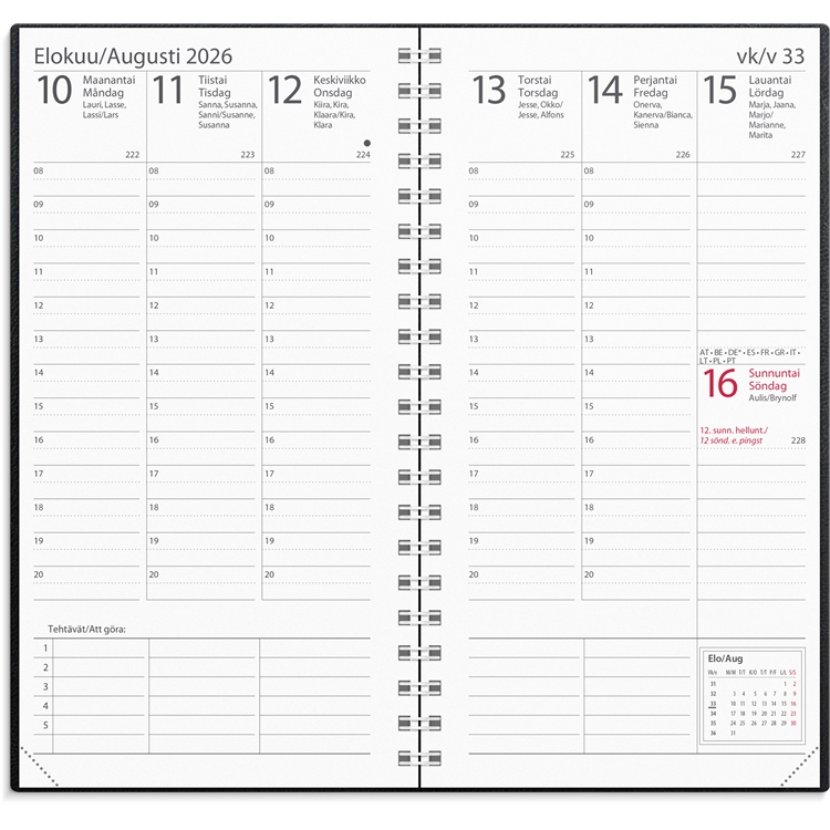 Kalenteri 2026 Interplano musta keinonahka kaksikielinen